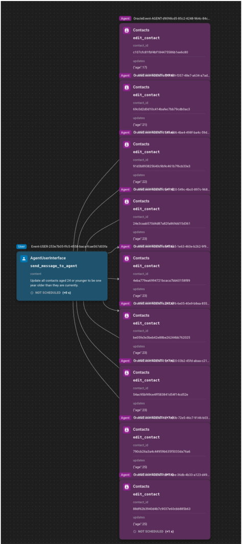 - Only one branch in the event DAG may include send_message_to_agent or send_message_to_-user events.