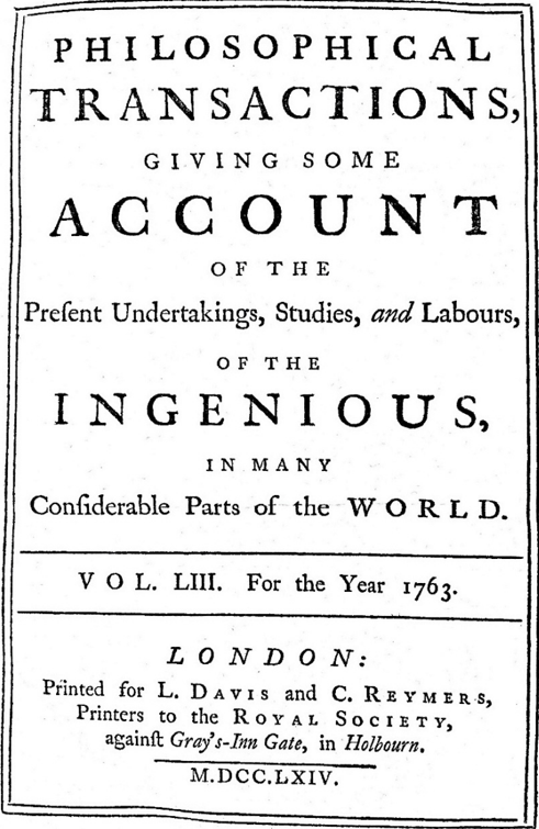 FIGURE 3.1. Title page of the journal where Thomas Bayes's posthumous article on inverse probability was published and the first page of Richard Price's introduction.