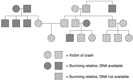 FIGURE 3.7. Actual pedigree of a family with multiple victims in the Malaysia Airlines crash. ( Source: Data provided by Willem Burgers.)