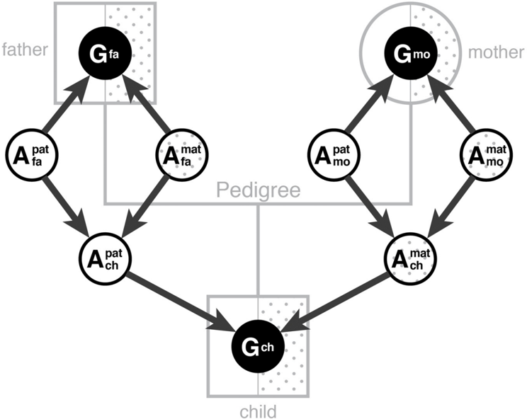 However, these indices are inherently limited because they work for only one specified relation and only for close relations. The idea behind Bonaparte is to make it possible to use DNA information from more distant relatives or from multiple relatives. Bonaparte does this by converting the pedigree of the family (see Figure 3.7) into a Bayesian network.